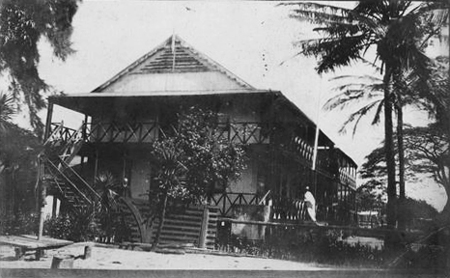 “Esperámos lá durante quase uma semana que um navio a vapor nos levasse a Chinde, uma foz do rio Zambeze. A única forma de encontrar Chinde era avistar duas árvores na margem, e se não as encontrasse, teria de dar a volta e voltar atrás e esperar pela maré. Naqueles dias, saía um puxão alemão e era baixado para o lado numa espécie de grande cesto de linho, e se era áspero era atirado para dentro enquanto balançava sobre a água. Depois esperou-se no rebocador enquanto a bagagem era levada a bordo…Em terra fomos à Concessão Britânica e ficámos na Mandala Boarding House…Finalmente chegou o vapor “Imperatriz”, descarregado, e fomos enviados a bordo. Teria ido para casa a qualquer momento depois de sair de Chinde. Foi uma viagem terrível, terrível”.