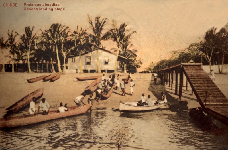 O Chinde é um pequeno povoado junto à foz do Zambeze. Antigo porto comercial, exibe a sua arquitetura utilitária, térrea, de concepção simples, em postais do início do seculo XX (Coleção C. Coutinho, Chinde).