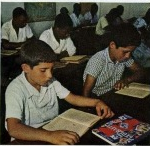 Na nova escola técnica, os rapazes trabalhavam a madeira, metal e equipamento eléctrico. As raparigas em limpos calções azuis estavam a ser ensinadas nas ciências domésticas.