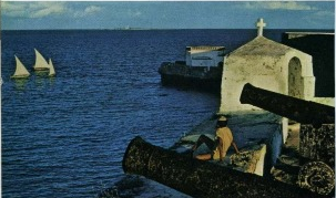 Deparei-me com paredes de coral de um metro de espessura, restos de uma antiga missão dominicana. Cactos e trepadeiras brotavam das rachaduras, e uma figueira crescia no altar de pedra. Lápides e pedaços de uma pia batismal barroca jaziam em ruínas – lembranças de um Portugal ousado numa terra bárbara.