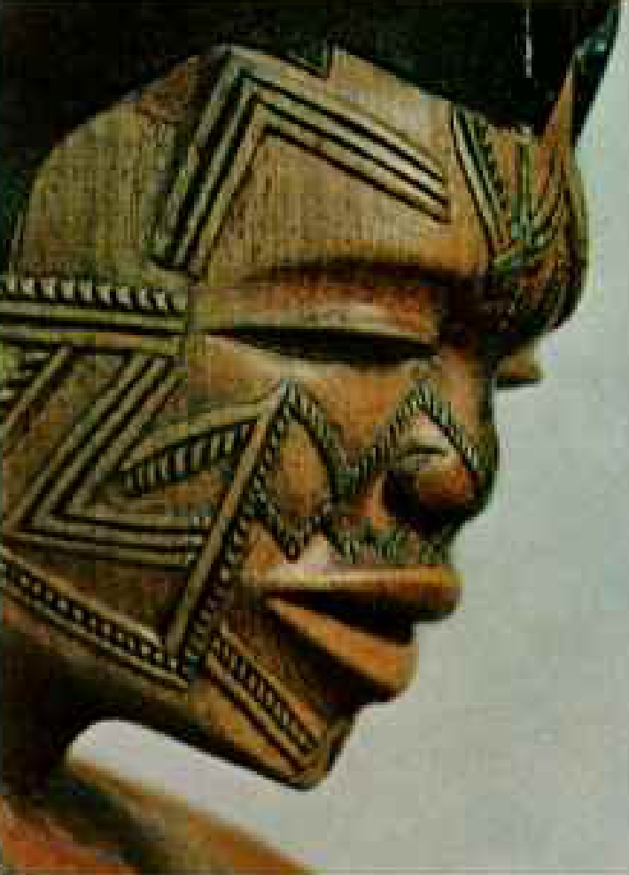 Dois usavam máscaras amarelas pintadas com desenhos característicos dos Maconde. O terceiro usava um divertido rosto falso preto com penas salientes como chifres. Todas as máscaras eram cabeças completas esculpidas em madeira maciça. Quem as usava só conseguia ver através das bocas abertas (página 218).