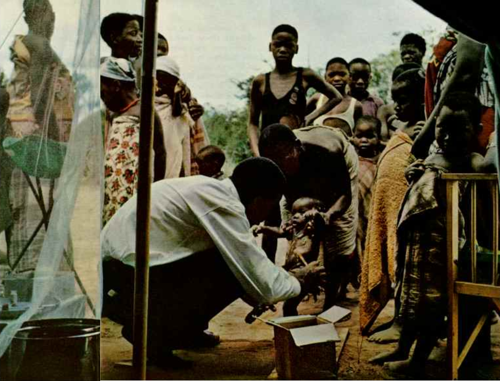 Mais tarde, entre Mueda e o Rio Rovuma, encontrei por acaso uma brigada de sete homens do Serviço Psico-Social. A versão moçambicana do Peace Corps. Diante de uma tenda, um jovem estagiário negro atendia uma fila de Macondes. As crianças choravam e as mães observavam ansiosamente até que todas as feridas fossem untadas com pomada (página 221). Outros pacientes pareciam gostar de injeções hipodérmicas.
