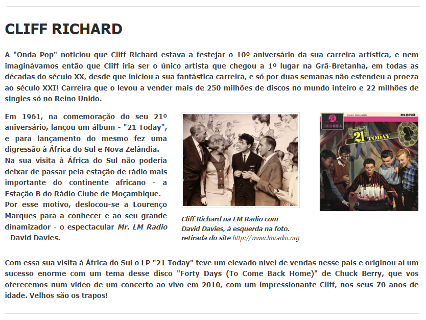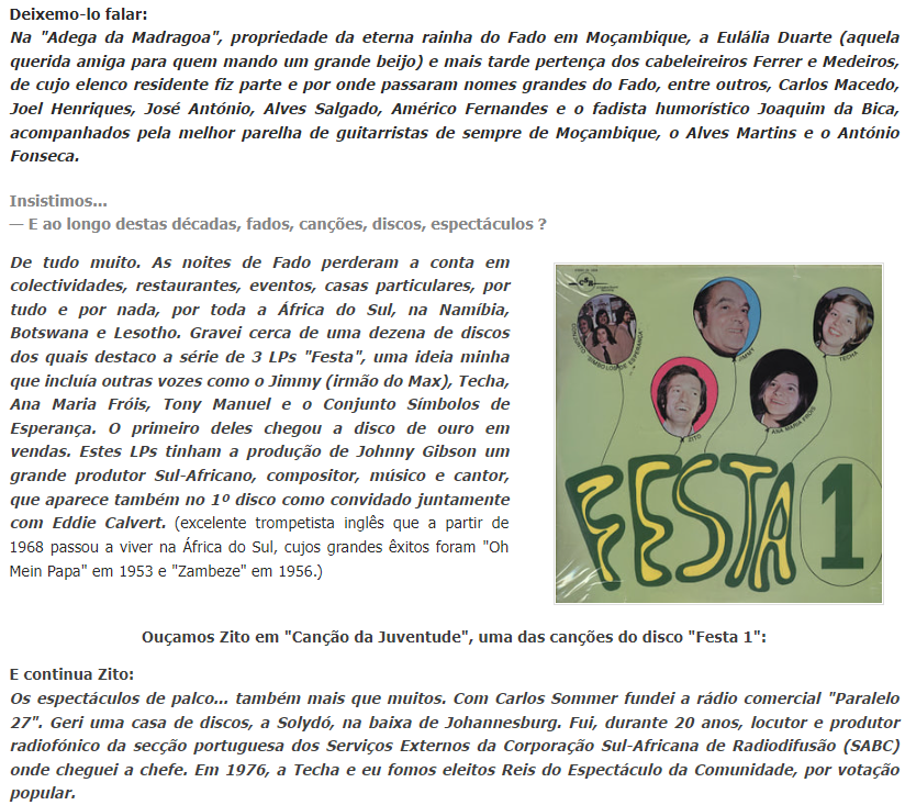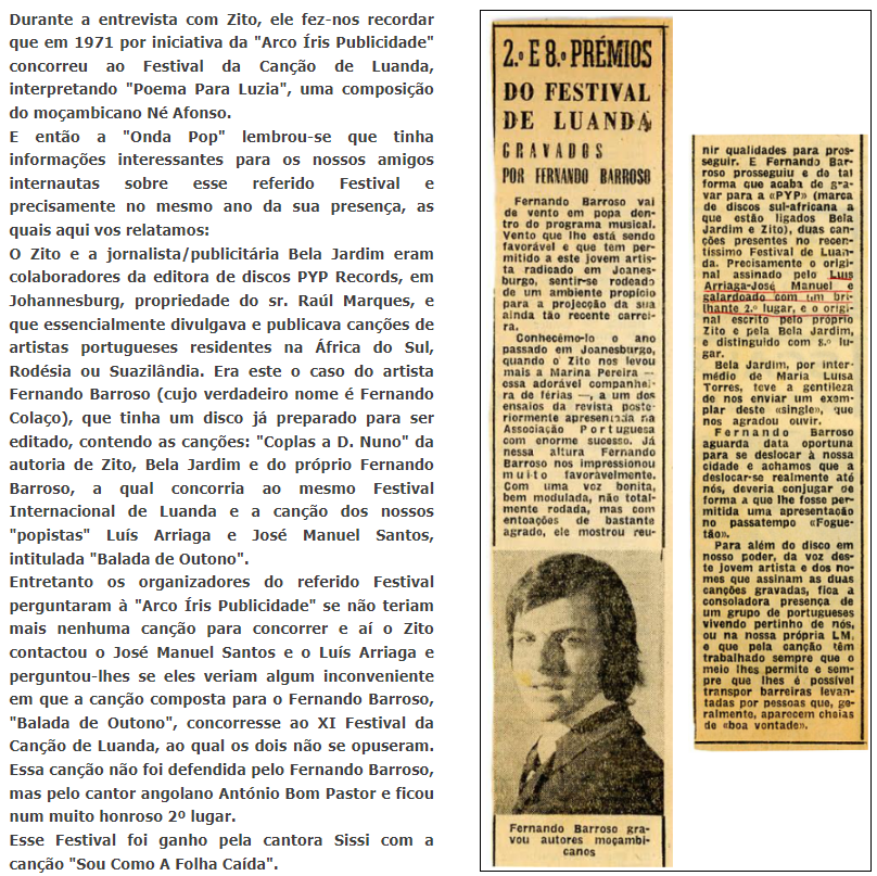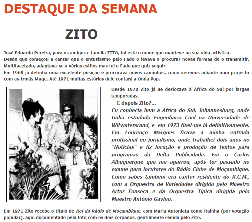 Semanalmente aos sábados no maior jornal de Moçambique – o “Notícias” de Lourenço Marques, desde 31 de Agosto de 1968.